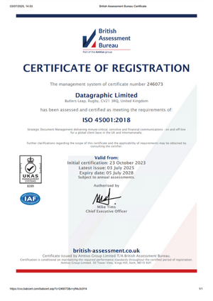 These certifications demonstrate our commitment to delivering secure, reliable, and sustainable mail services.