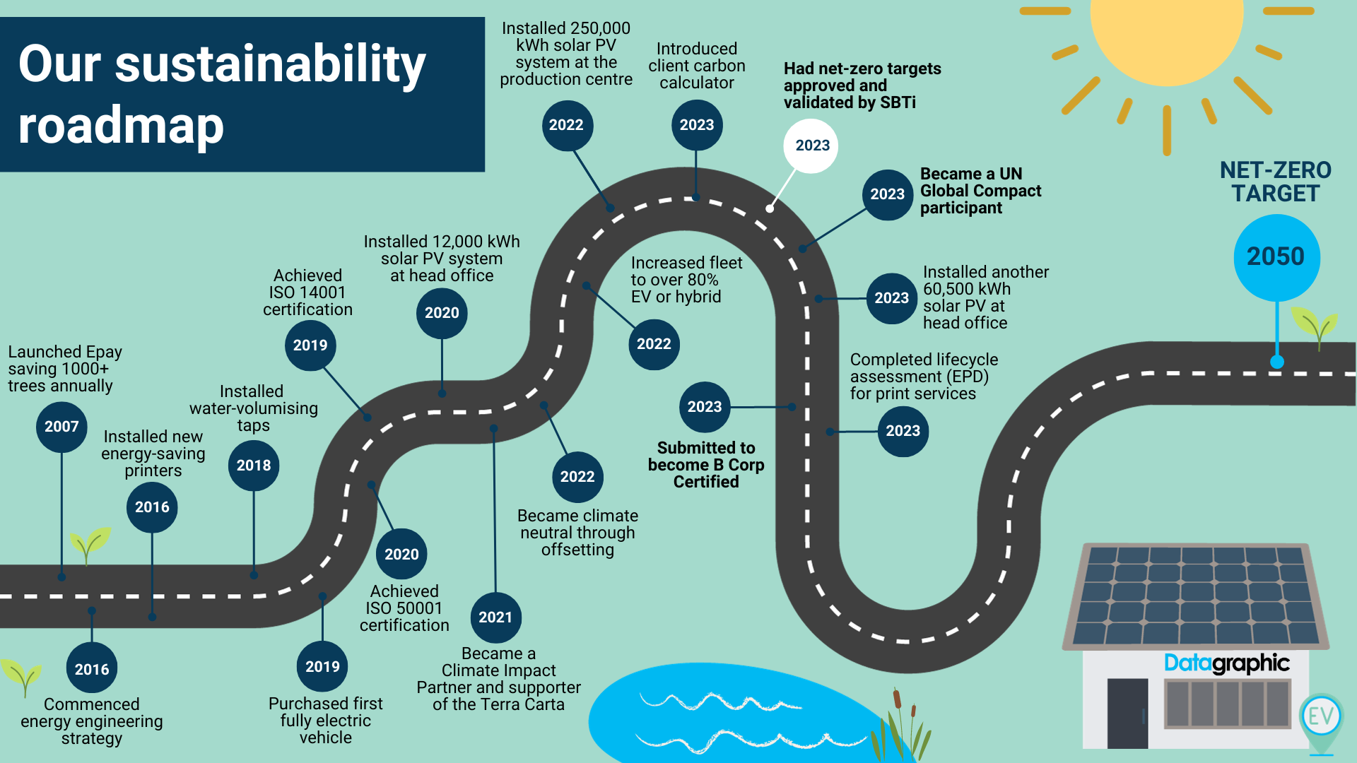 Datagraphic participates in the United Nations (UN) Global Compact and aligns with the UN Sustainable Development Goals (SDGs) to measure success. Going further, we are undergoing assessment to become a B Corporation (B Corp) to recognise how we prioritise ESG values alongside financial goals to balance purpose and profit.