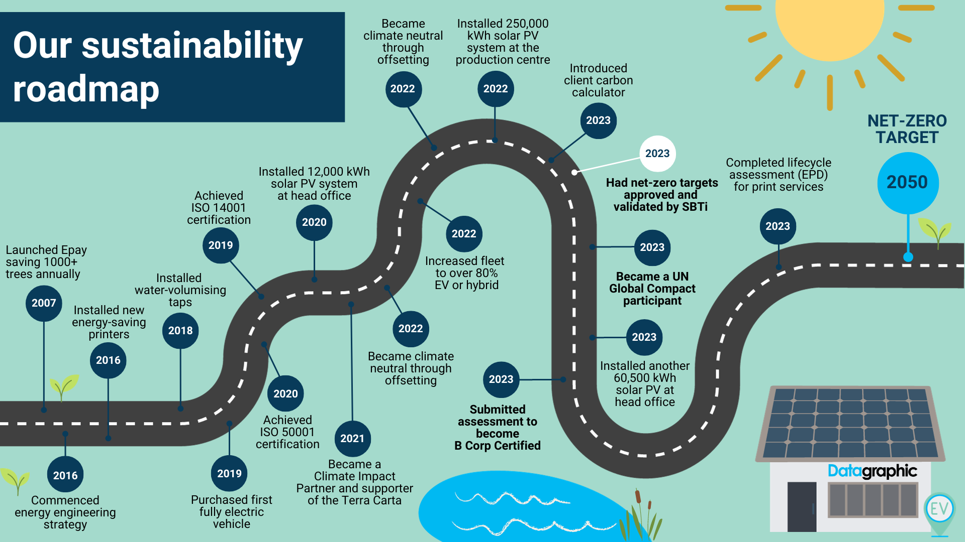 As well as these objectives, Datagraphic is recognised by the United Nations Race to Zero campaign. We commit to this alongside governments, businesses, cities, regions, and universities globally to cut total emissions.