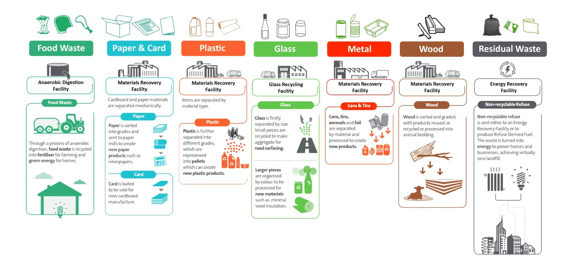 Carbon-neutral waste management company Fortress Recycling then collects, weighs and processes any remaining general waste sustainably at its state-of-the-art recycling plant. The diagram below shows what happens to the waste they collect from us.